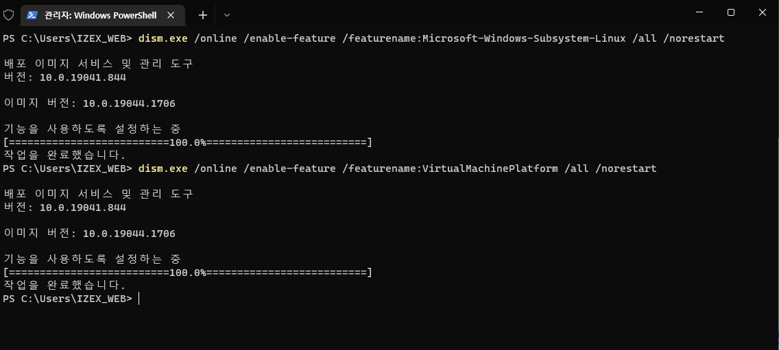 여기까지 진행이 됬다면, WSL 설치는 완료가 되었다.
