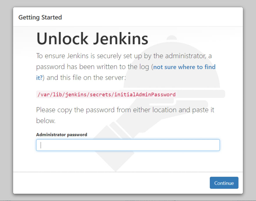 - 이미지에 보이는 경로에서 초기 패스워드를 받아와서 입력 하면 된다.