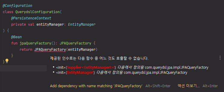 간단하게 JPAQueryFactory를 사용하려고 하는데 사용이 안된다.... 함수 호출이 안된단다 ....